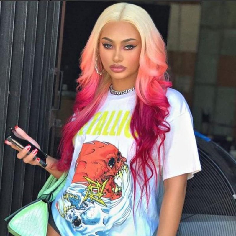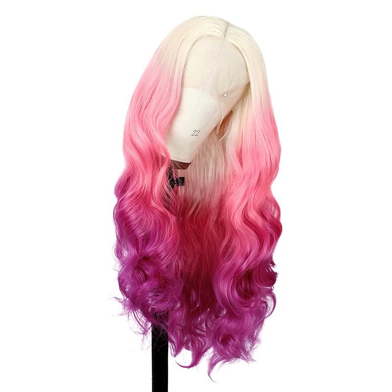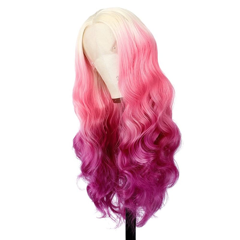 Phayre Blonde Ombre Pink Lace Front Wig Bodywave Half Hand Tied Heat Resistant Fiber Hair 3 Tone Synthetic Lace Front Wigs for Fashion Women