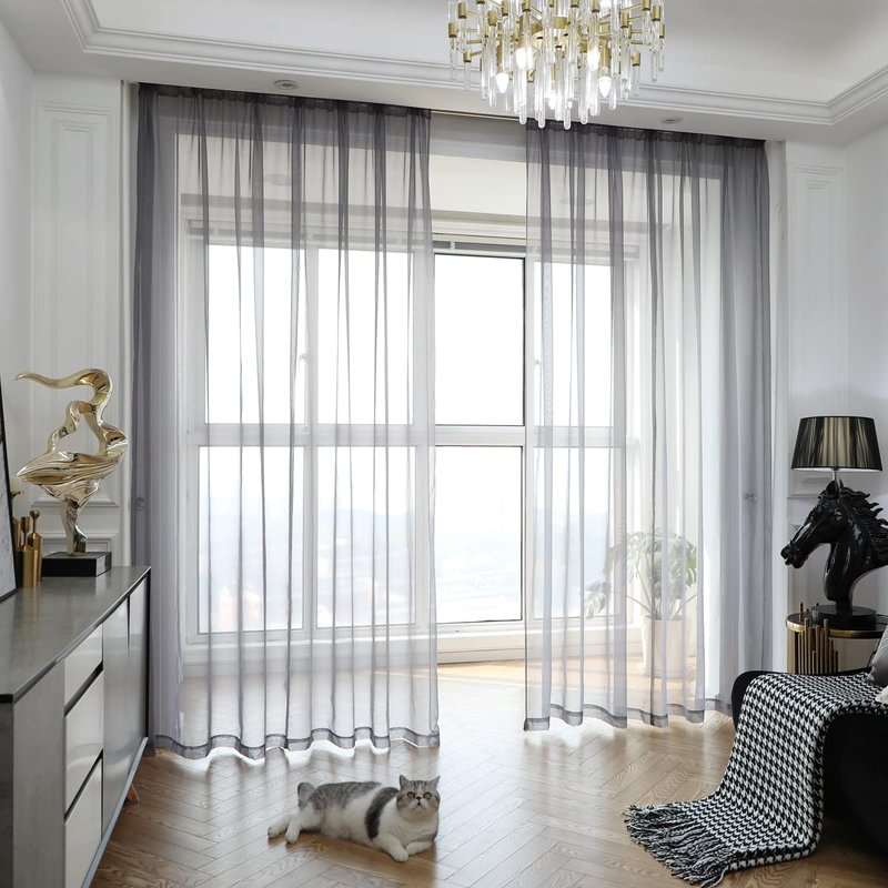 1. 100% Polyester Sheer Voile Fabric Curtains, Soft Elegant Clear Transparent.