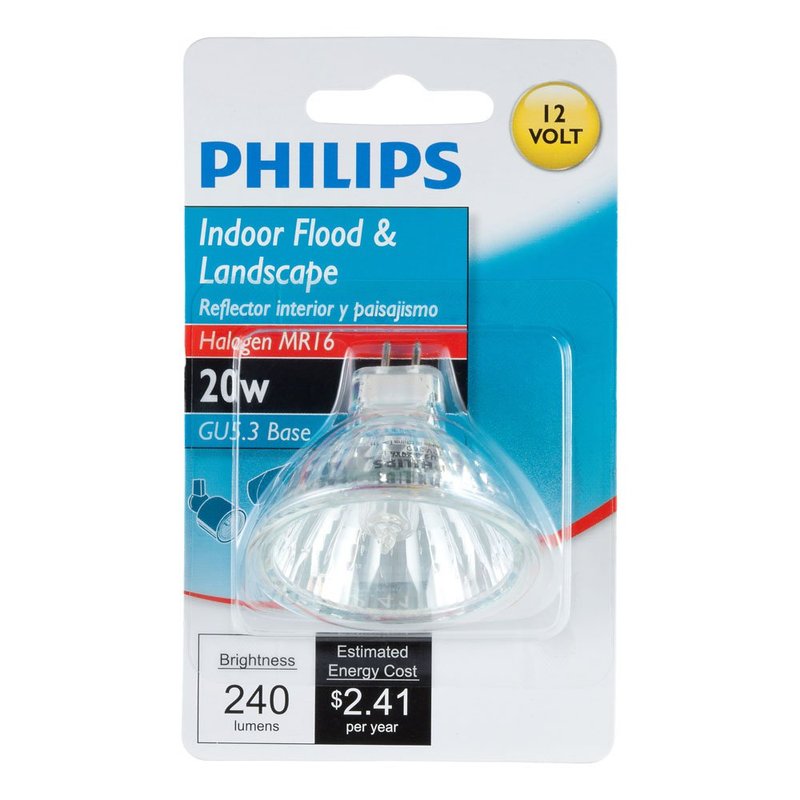 Philips 419317 20-Watt MR16 Landscape and Indoor Flood Light Halogen Light Bulb, Bright White, 1 Count (Pack of 1)