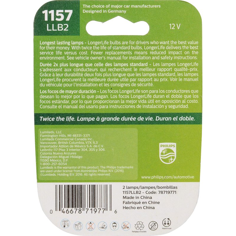 Philips Automotive Lighting 1157LLB2 1157 LongerLife Miniature Bulb, 2 Pack