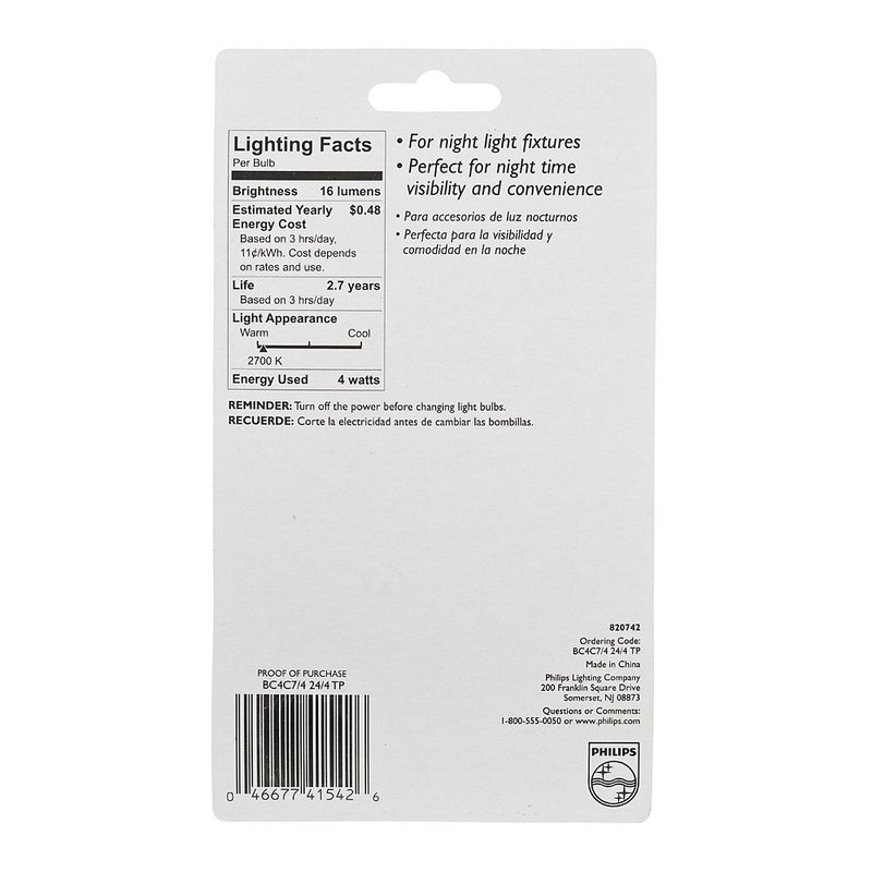 - The Philips night light has a sleek, compact design--great for night lights and small lamps. Provides ideal light for night time safety, convenience and security.