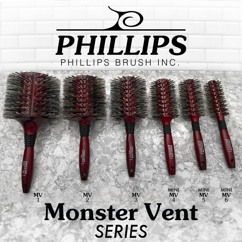 Phillips Brush Mini Monster Vent 5 Professional Hair Brush (2.5” Diameter Barrel) - Vented Blowout Hairbrush with Nylon Reinforced Boar Hair Bristles, Beech Wood Handle with Rubber Grip