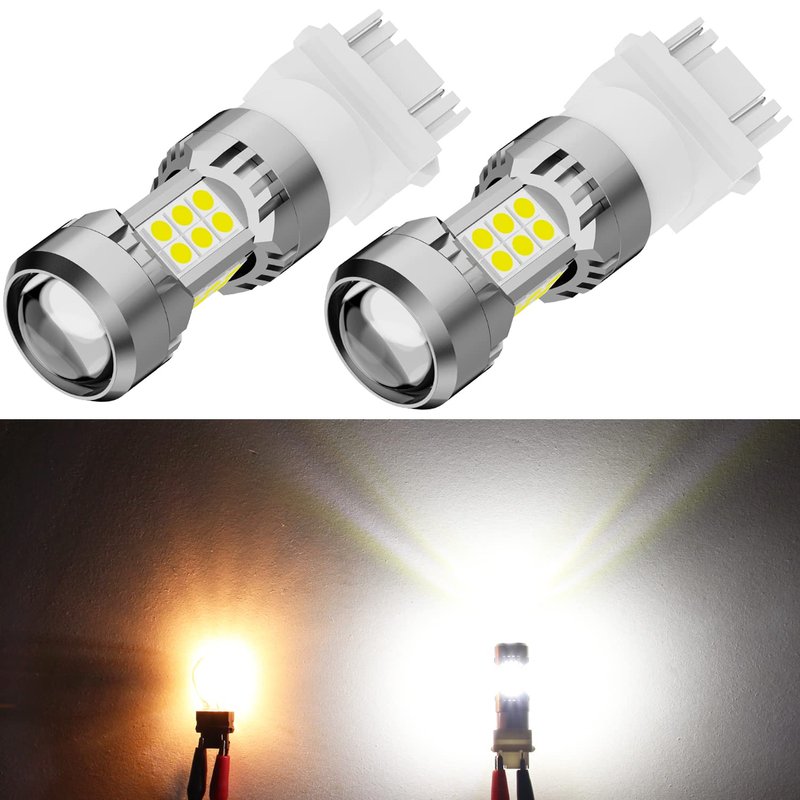 - (Pack of 2) Brightness: 1600LM per 3156/3157 LED bulb, 3200LM per set; LED chip: 30 pcs high power & high output 3030 SMD LED chips, 360 degree light output; Current: 100Ma(dim mode), 600Ma(bright mode); Power: 7.2W; Voltage: 12V-24V; Color: 6000K xenon white