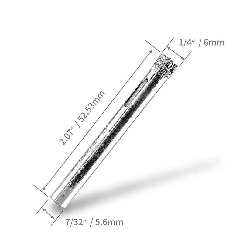 - *Package Included: 15 x Diamond Drill Bits. Cutting Hole Diameter is 1/4" / 6mm, Shank Diameter is 7/32" / 5.6mm, Total Length is 2.07" / 52.53mm.