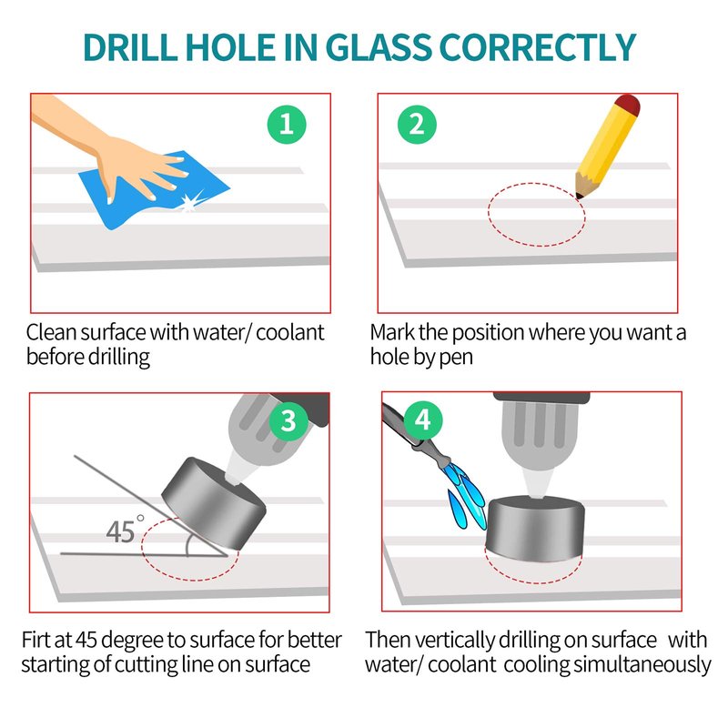 - *Multiple Applications: The diamond drill bit can remove a complete 6mm diameter hole on glass, tiles, granite, ceramic. In addition to cutting holes for glass, the Hole Saw comes in handy for tile bottles, blocks jars, fiberglass, porcelain tile, ceramic, slate, marble, light stone. Not for use on Concrete or for depths beyond about 1/2".