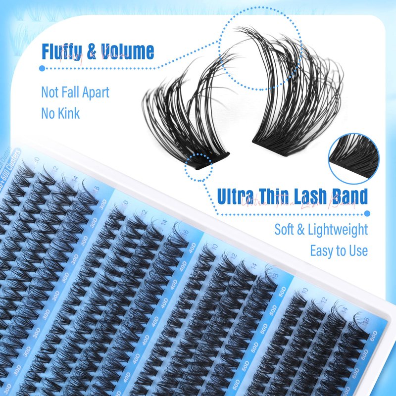 - Durable & Comfortable Thin Lash Band: Thin and flexible eyelash cluster band, wide enough to be comfortable and to apply lashes quickly. Lash extensions are lightweight, 0 burden, not easy to fall apart, just buy these cluster eyelash extensions with confidence