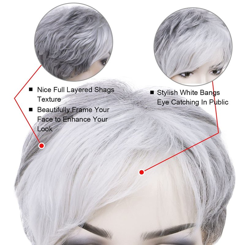 - ★High Quality Fiber--Short white wigs for women make of high quality Fiber,soft touching and natural, just beautiful color with enough shine but not too shiny.Minimal tangle and shedding,Easy to style it.