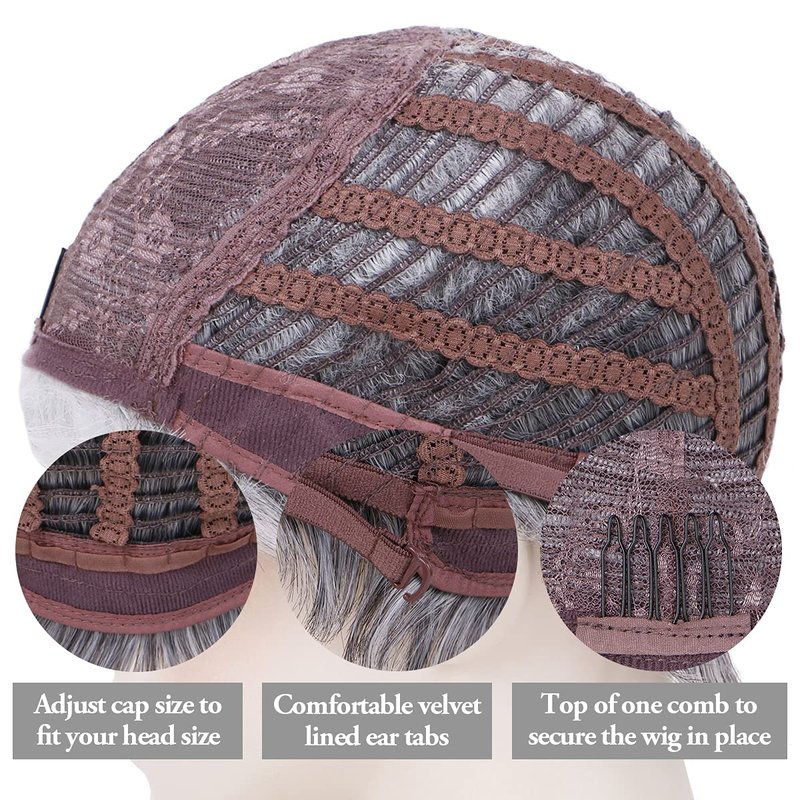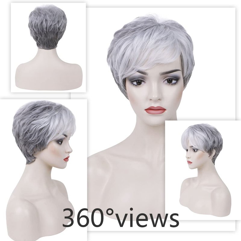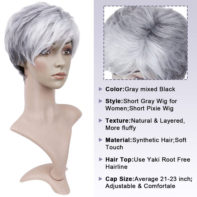 - ★Natural Grandma Pixie Style--Short layer pixie wigs style with black mix grey white color,there are more white and gray mix it to get a natural looks,just like your own. the short wigs Suitable for over 60 older women daily wear.
