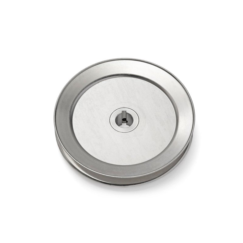 This V-Groove Drive Pulley is for use as a general purpose pulley for power transmission such as compressors, industrial fans, lawnmowers, snowblowers and electrical motors. It has a hub attached and the inside diameter is 3/4''. This pulley comes with 2 set screw holes. The heavy duty steel is designed to be more durable. This part is Zinc-plated or Painted to prevent rust. Additional Features: Made of Steel Works with 4L/A|5L/B belts Heavy duty split steel