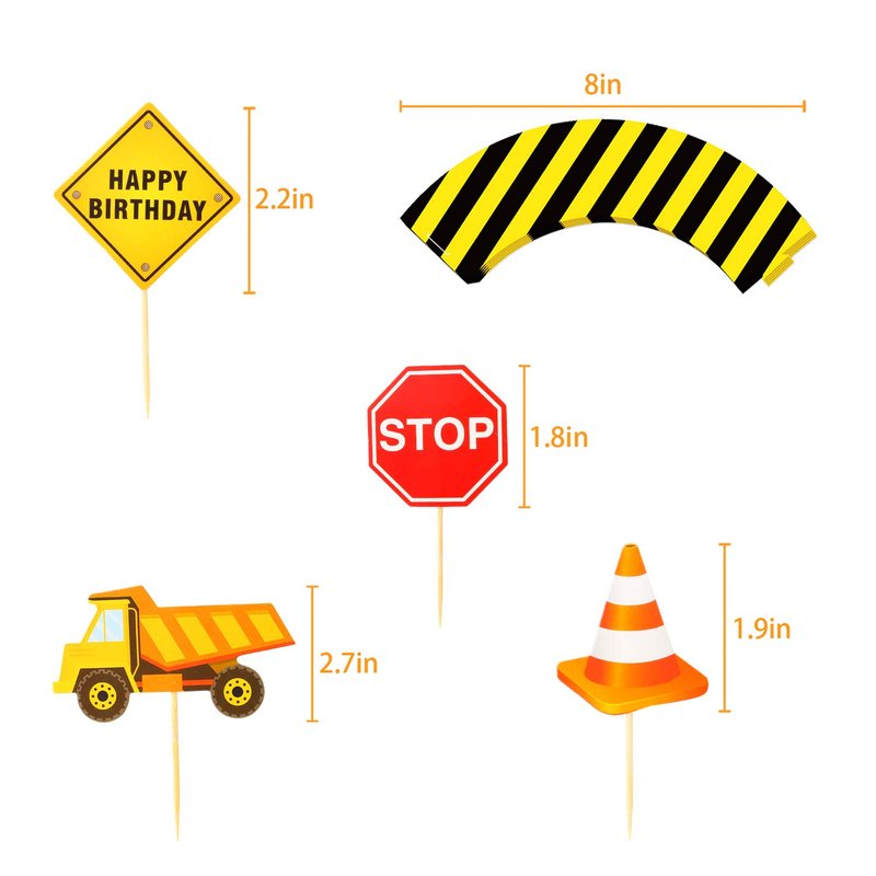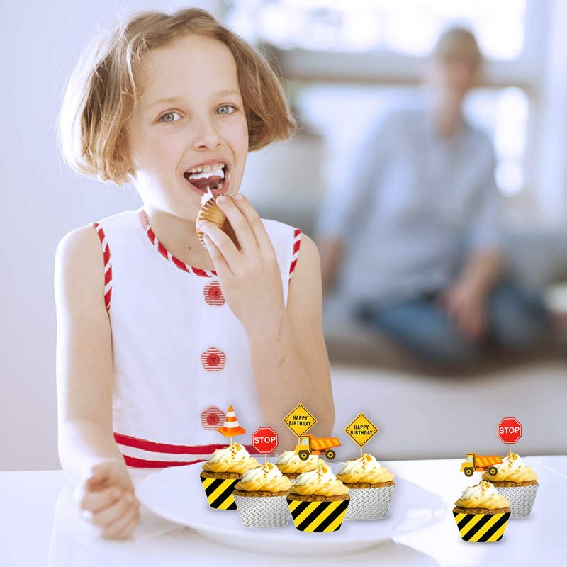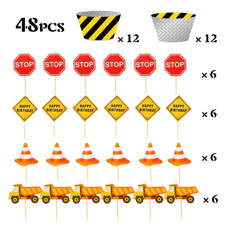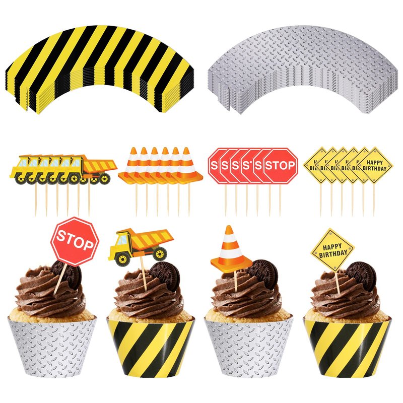 - Value Pack: 24 Pieces double-sided cupcake liner wrapper, and 24 pieces cake topper of 4 different patterns. Cupcakes get a ton of fun when you top them with construction sign and trucks! Even the cupcakes are celebrating your little ones party!