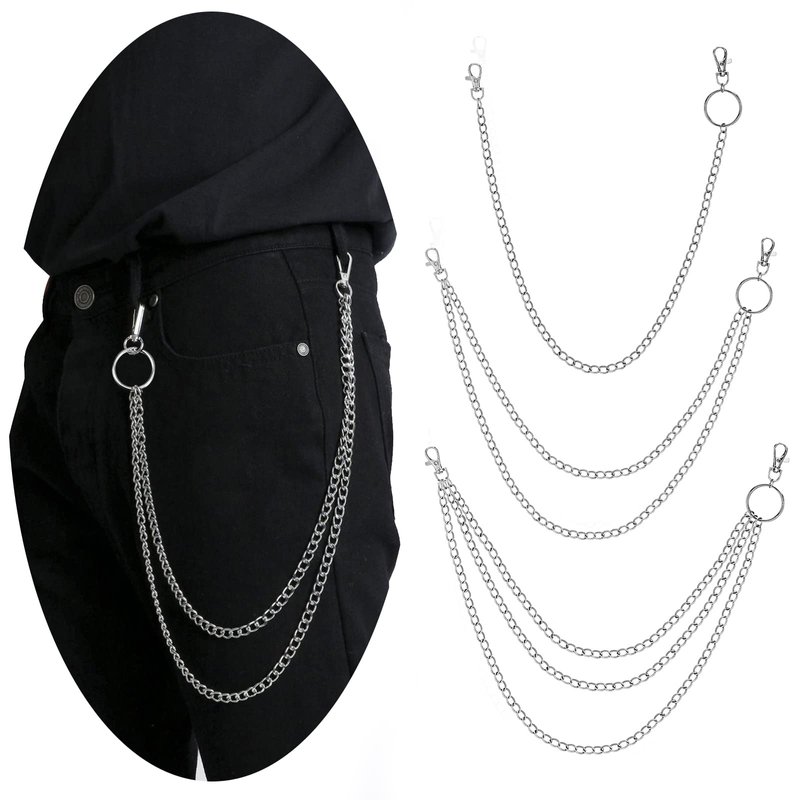 PHOGARY 3 Pieces Jeans Chains Wallet Chain Pants Chain, Silver Pocket Chain Hip Hop Rock Chains Punk Gothic Metal Belt Chain Biker Trouser Chain Accessory Jewelry Gift for Men/Women