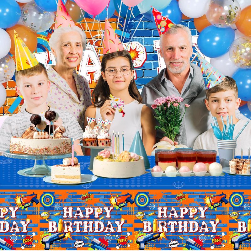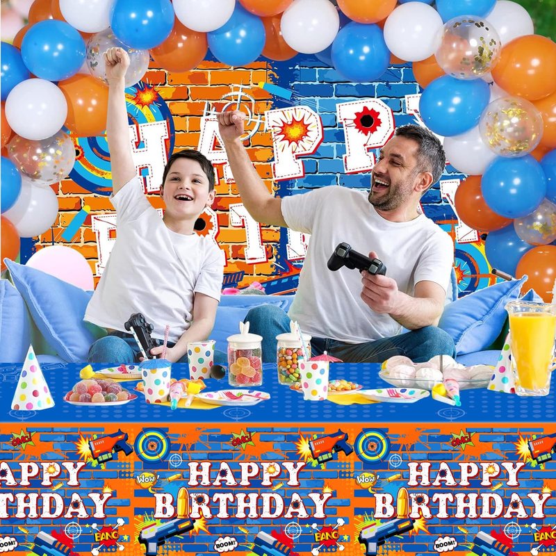 - PERFECT FOR DART WAR DECORATIONS: These 2 rectangular tablecloths, measuring 54" x 108" each, are the ideal backdrop for your little soldier's special day. Whether it's a nerf gun birthday party or any gunfight celebration, the dynamic design adds a playful and festive touch to your event decor. Complete the look with nerf party favors and nerf balloons for a truly immersive experience.
