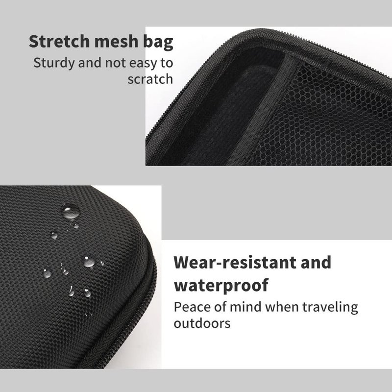 - [Storage bag size]- 100mm*150mm*60mm, can accommodate a printer and a small amount of paper rolls and an USB cable. Phomemo Mini Hard Shell Protection Box is waterproof, dustproof and shockproof. It has a built-in storage compartment and a bumper belt to effectively protect the printer from damage.