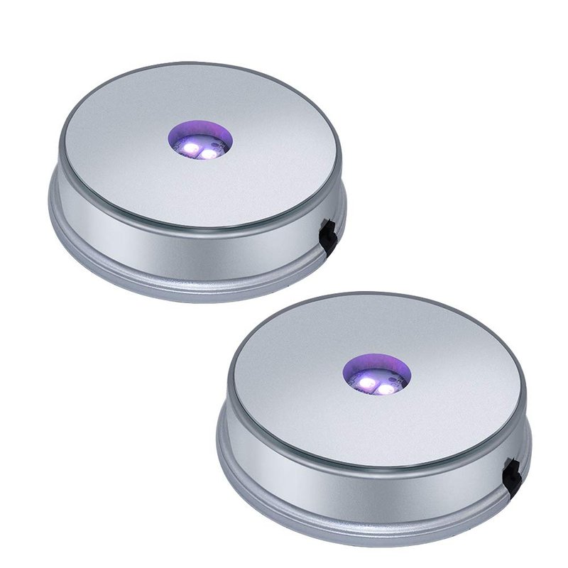 PHOSOK LED Silver Display Base- Crystal Glass Art Statue Merchandise Display Stand- Multicolor Changing Light Display Stand Powered by 3 AAA Batteries (Pack of 2)