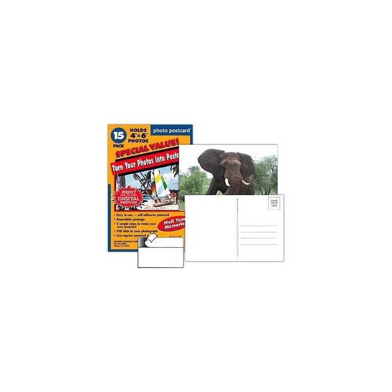 This package of photo postcards from Howard Packaging is just the ticket for sending your vacation memories home ahead of yourself. These easy-to-use self-adhesive postcard backs are just waiting for your brilliant photos to attach themselves to. Two simple steps is all it takes to take your cool photos and make waaay cool postcards out of them.No longer will your loved ones have to receive cheesy photos of the hotel and its generous parking lot, gone are the days of postcards from the spinner rack at the local tourist shop that feature strangers having a better time than you - now you have command of your mailings. From this point on its strictly, 'Here we are in front of . . . - the Golden Gate, Diamond Head, Fenway Park, Mt. Rushmore, the Vatican, the Eiffel Tower'. You get the idea. But you don't have to wait 'til you have your holiday booked to get these clever memory mailers. They're also perfect for just keeping in touch in ordinary ways. Think of: wedding announcements, baby announcements, party invitations, ''Miss You...'' cards, valentines, and maintaining your solid position in the will by making sure the grandparents get regular photos of the kids.
