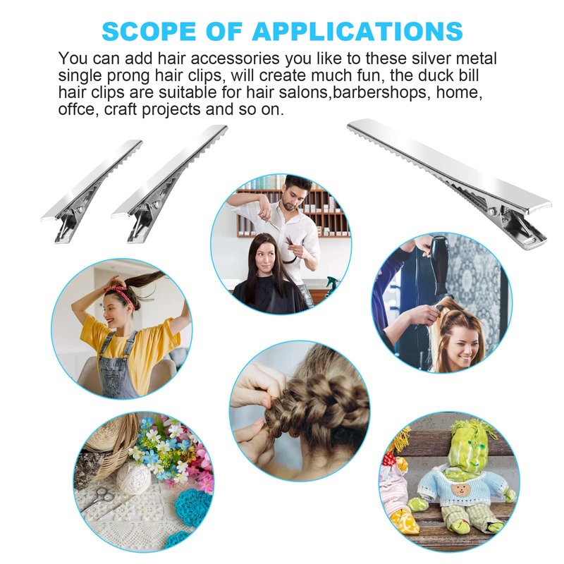 - Easy to Use: The smooth flat silver alligator clips feature very simple yet classic look. Jagged teeth along the edge makes the hair clips securely hold the hair without slippage, strong springs ensure the flat clip easy to open.
