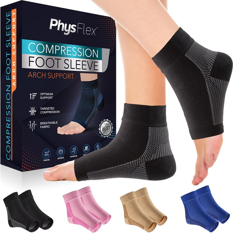 PhysFlex Compression Socks for Plantar Fasciitis, Achilles Tendonitis Relief - Ankle Compression Sleeve for Heel Spurs, Foot Swelling, Fatigue & Sprain - Arch Support Brace for Work, Gym, Sports