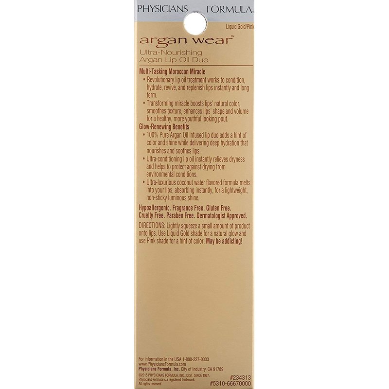 Physicians Formula Argan Wear Ultra-Nourishing Argan Lip Oil Duo, Liquid Gold/Pink, 0.6 Fluid Ounce