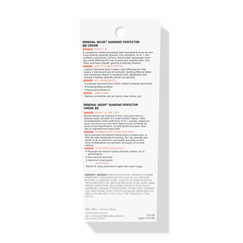 Physicians Formula Mineral Wear®Diamond Perfector BB Cream, 10 in 1 Skin Perfecting Beauty Balm, Lightweight & Luminous Finish - Light to Medium