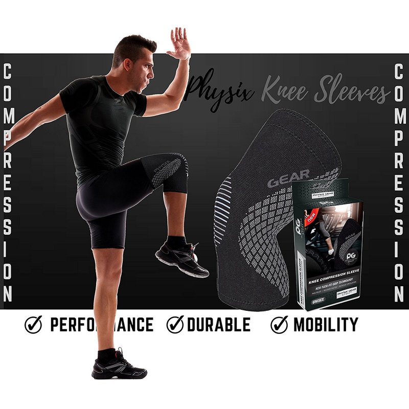 - ✅ COMPRESSION SLEEVE FOR KNEE with PHYSIX FLEXI KNITTING: Durable knee support for knee pain with quality stitching; not stiff, moves with you, will not chafe or cause skin reactions, with no irritating tags or labels that dig into your skin!