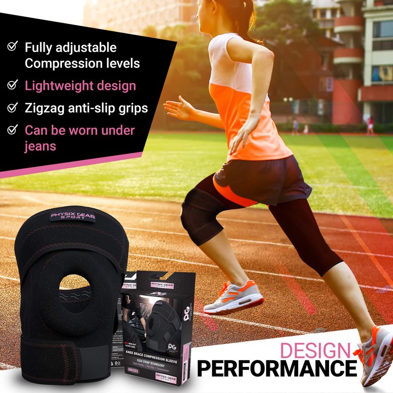 - ✅ FLEXIBLE, FITS BOTH RIGHT & LEFT KNEES: Our compression knee brace perfectly suits your left & right knees. This runners knee brace is ideal for climbing, running, or bending. Physix Gear knee braces for men/women are available in singles