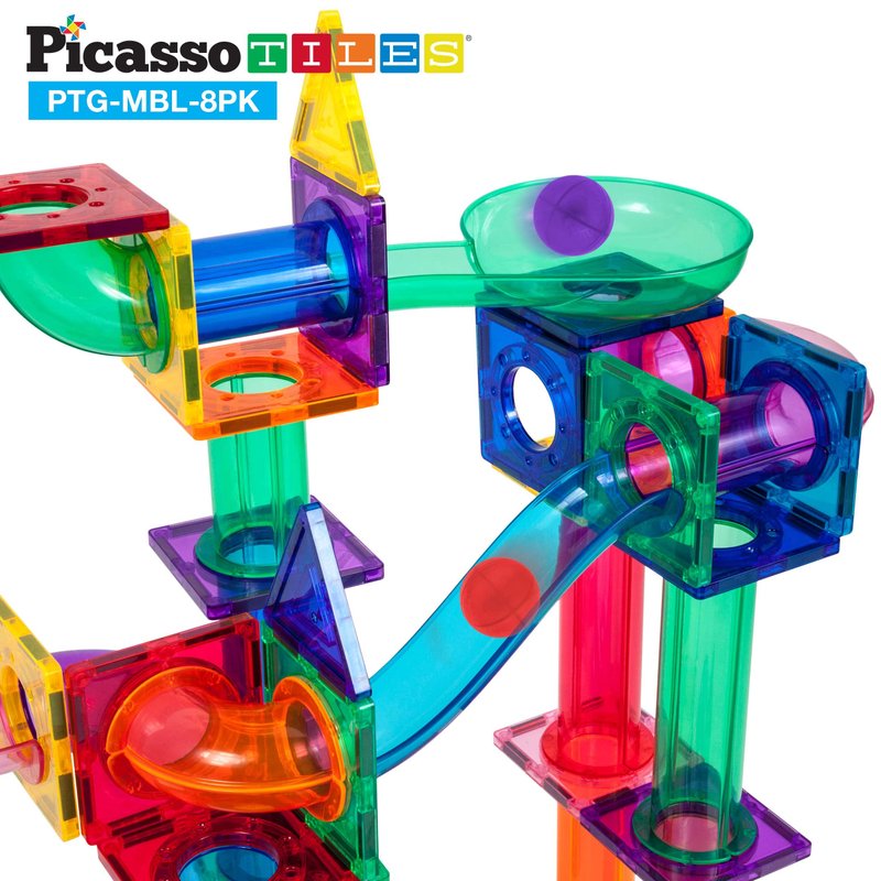 PicassoTiles 8pc Marbles for Magnetic Block Tiles Marble Run Race Track Magnet Building Tile Blocks Racetrack Maze Construction Toys Creative Toy Girls Boys 3 and Up Early Education STEM Learning Kit