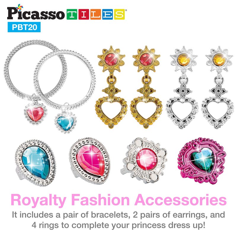 PicassoTiles Kids Fairytale Royal Princess Dress Up Pretend Play Tiara, Jewelry Boutique, Shoes & Fashion Accessories Toy Collection For Girls Children Ages 5+ STEM Creative Imagination Toys