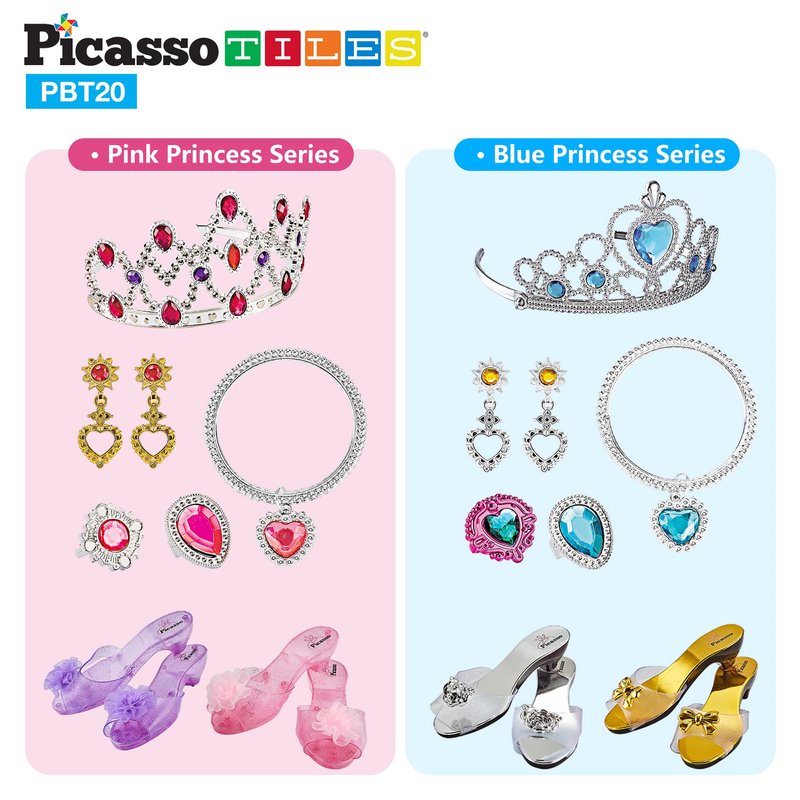 - FIT DAILY OUTFIT - The PicassoTiles princess shoes fulfill every girl's dream of being a queen. It can be used either at a princess party or as a regular daily wear shoe with choices to mix and match with their favorite princess dresses or clothes