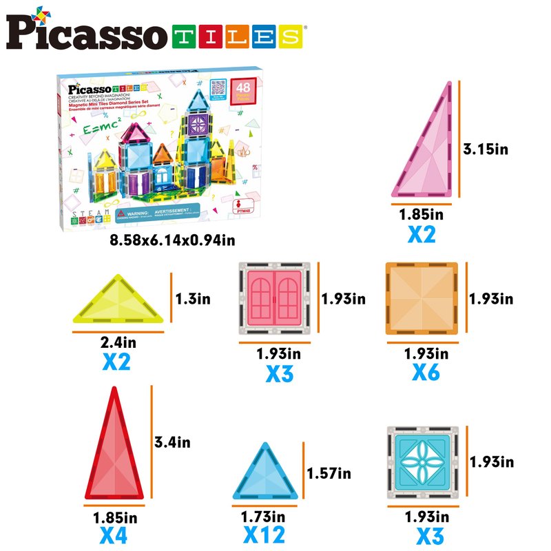- DREAM BIG & BUILD BIG: PicassoTiles 48 piece Magnet Tile Building Block playset features magnetic tiles for easy assembly, this set includes 33 blocks with a diamond-like surface, 6 clip-on doors, 3 operable windows, & 6 hollow squares. Empowering children to shape their own pretend play narratives and envision grand structured designs, each element invites endless exploration. With every new creation, a world of adventure unfolds, inspiring young minds to think boldly and dream without limits