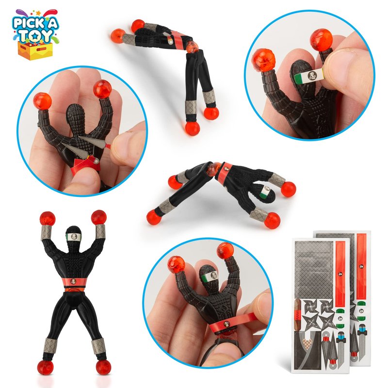 PICK A TOY 24 Sticky Wall Climbing Black Ninjas with DIY Costume Stickers – Fun Stretchy Window Crawlers, Xmas Stocking Stuffers Birthday Party Favors for Kids
