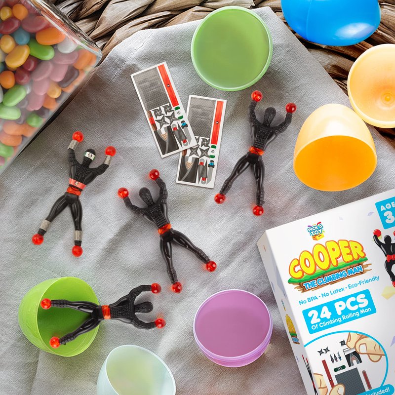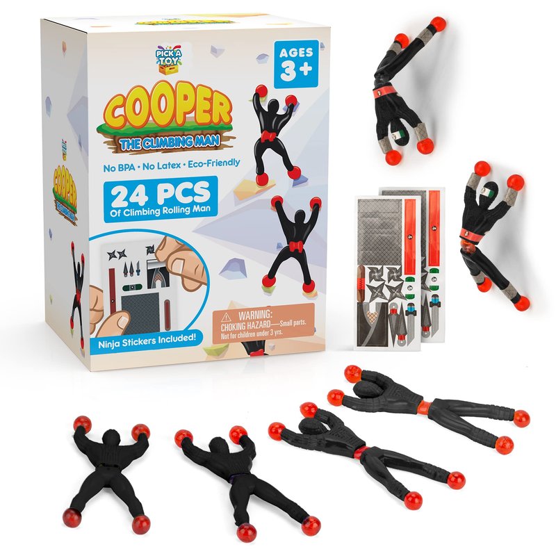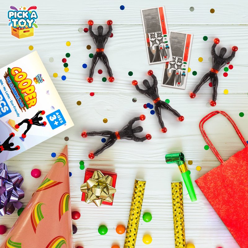Introduce your kids to a new and exciting way to play with Pick A Toy's Sticky Climbing Men. These flexible, rubber-handed and footed figures can be thrown against walls, windows, or even glass, and will flip down slowly, providing endless entertainment for children. Made with durable plastic bodies and BPA-free materials, these climbing men are easy to hold and throw, encouraging hands-on play. Your children will love discovering new ways to play with these wall-climbing figures, whether it's sticking them to mirrors, climbing picture frames, or performing tricks all over the house. This 24-piece set of Sticky Climbing Men is suitable for boys and girls aged 3 and above. Product details: 24-piece set of Sticky Wall-Climbing Men Fun, flexible, non-toxic toys for kids Heavy-duty BPA-free plastic Great as birthday party favors 100% surface safe (no stains or residue) Sticky hands and feet with flexible bodies Suitable for boys and girls ages 3 and up. Make your child's next party or event more exciting with these fun and flexible Sticky Climbing Men from Pick A Toy. Add them to your cart now.