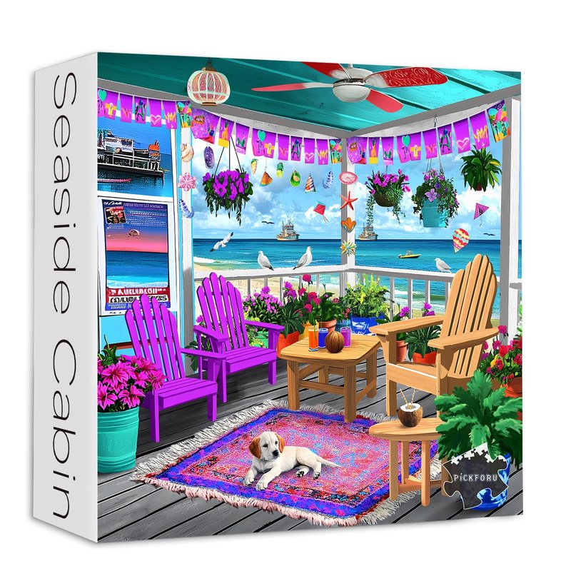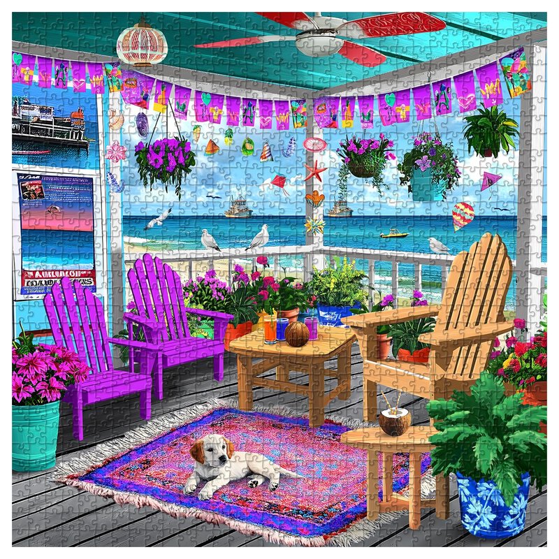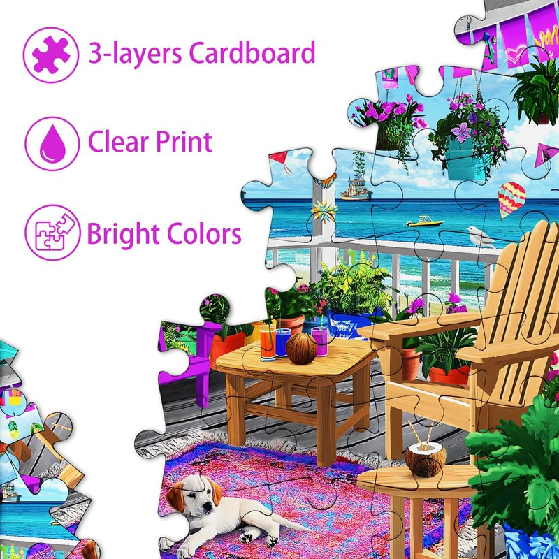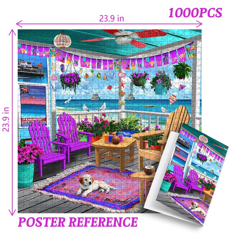 PICKFORU Beach Puzzles for Adults 1000 Pieces, Colorful Seaside Puzzle Beach Chair Flower, Impossible Holiday Puzzles as Wall Art
