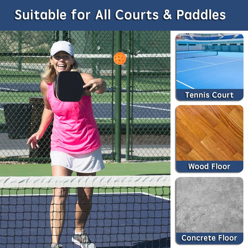 - 【Six Different Colors of Pickleballs】 The vibrant colors provide high visibility and are easy to spot for outdoor sports. Even in low light conditions, our outdoor pickleballs provide a greater field of vision. Our pickleballs are suitable for any type of pickleball paddle, including graphite, fiberglass or wood paddles.