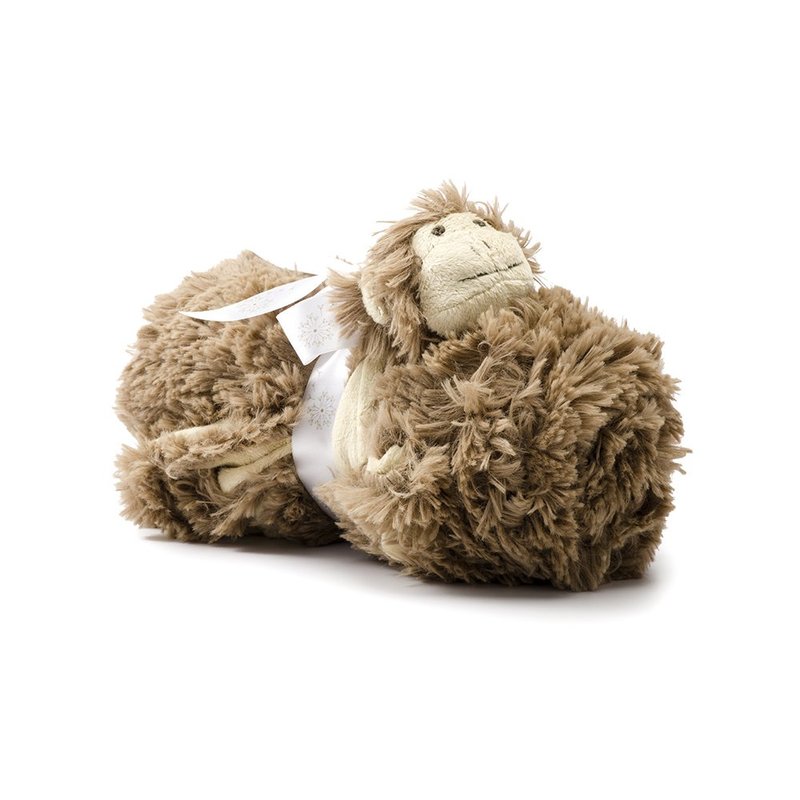 - Cuddly stroller blanket features a monkey head