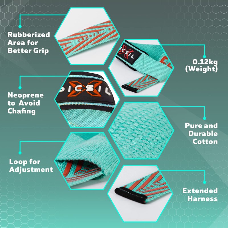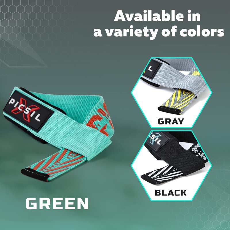 PICSIL Wrist Straps, Padded Wrist Straps for Weightlifting, Extended Deadlift Straps for Grip Support, Advanced Weightlifting Straps for Comfort and Stability, 1 Pair, Green