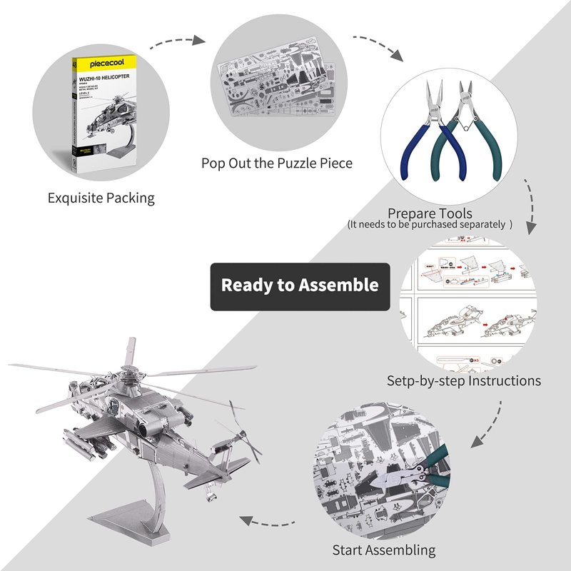 - 【DIY TOOL KITS REQUIRED】- Assembling tools are recommended, but not included. Parts can be easily cut off the sheets. Clipper and needle nose pliers are the recommended tool for bending and twisting the connecting tabs.