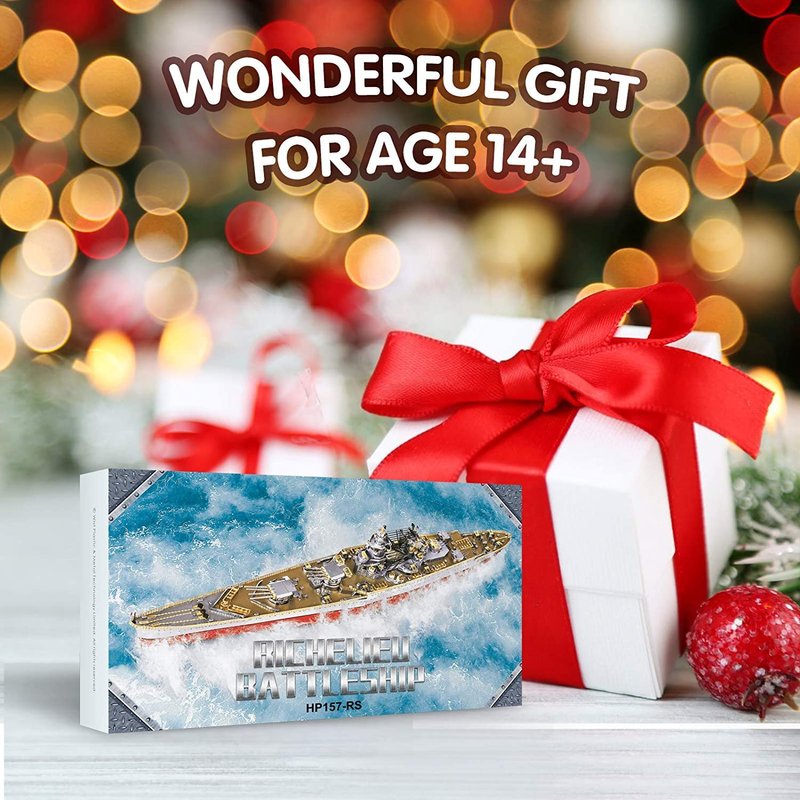 Piececool 3D Metal Puzzles for Adults, Richelieu Battleship Model Kits, Military Watercraft Warship Models Building Kit DIY 3D Puzzles for Anxiety Relief Toys, Great Gift Ideas -300 Pcs