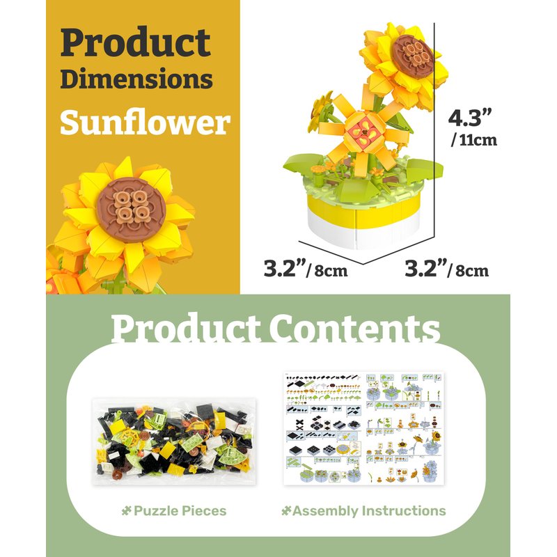 PieceRelax Flower Bouquet Building Decoration Set Artificial Flowers Mini Bricks Potted Sunflower Home Accessories or Best Gift Valentine Décor for Him and Her Botanical Collection for Adults [KZ1028]