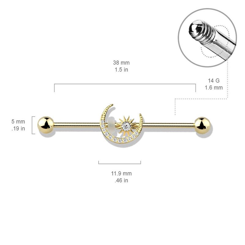- STYLE: CZ Crystal Paved Crescent Moon and Star Industrial Barbell