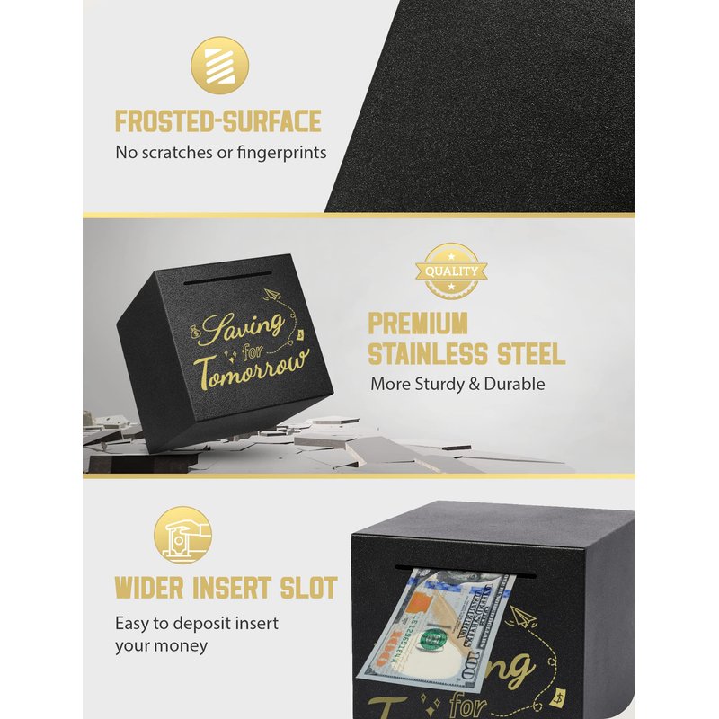 - 【Saving for a Rainy Day】The stainless steel adult piggy bank with a gold "Saving for Tomorrow" printed on the front, adds a touch of fun and decoration to your savings. The simple and delicate style can also be decorative to match your room