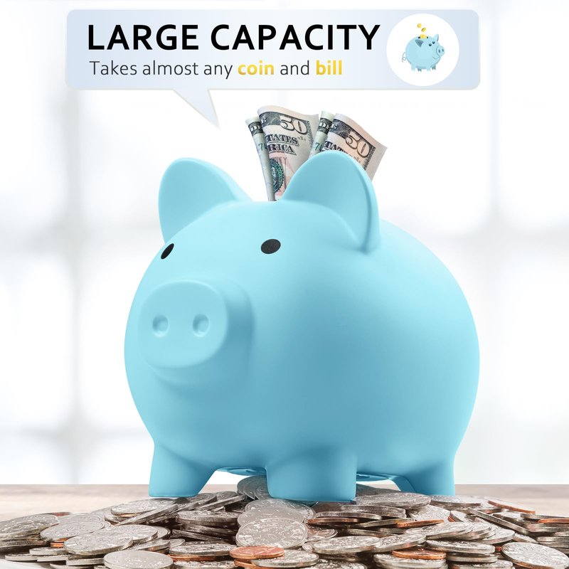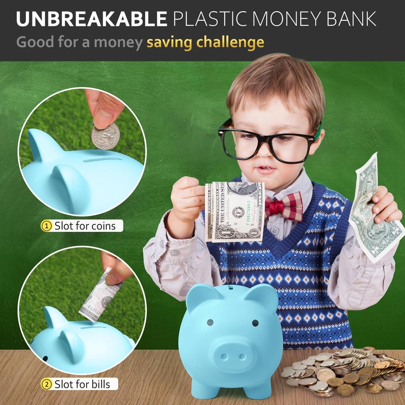 Piggy Bank for Kids Adults, Vcertcpl Unbreakable Plastic Piggy Bank Coin Bank Money Saving Box for Cash Saving, Kids Bank Money Jar Adults, Piggy Bank for Boys Girls, Gift Toys Banks for Kids (Blue)