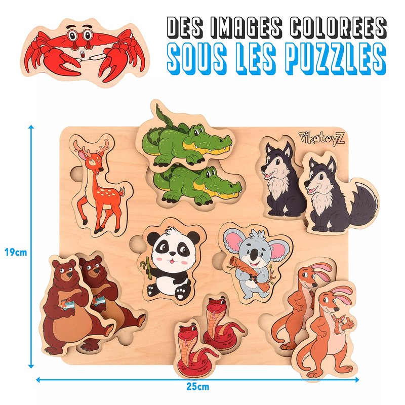 - LEARNING AND DEVELOPMENT: The PikatoyZ puzzle collection cannot be complete without the theme of wildlife. That's why we designed these wooden puzzles with bright colours and identifiable designs for babies and children aged 1 2 3 years. A wooden baby toy made up of 8 pieces allowing the reduction of addiction to smartphones while helping to learn in a fun and fun way.