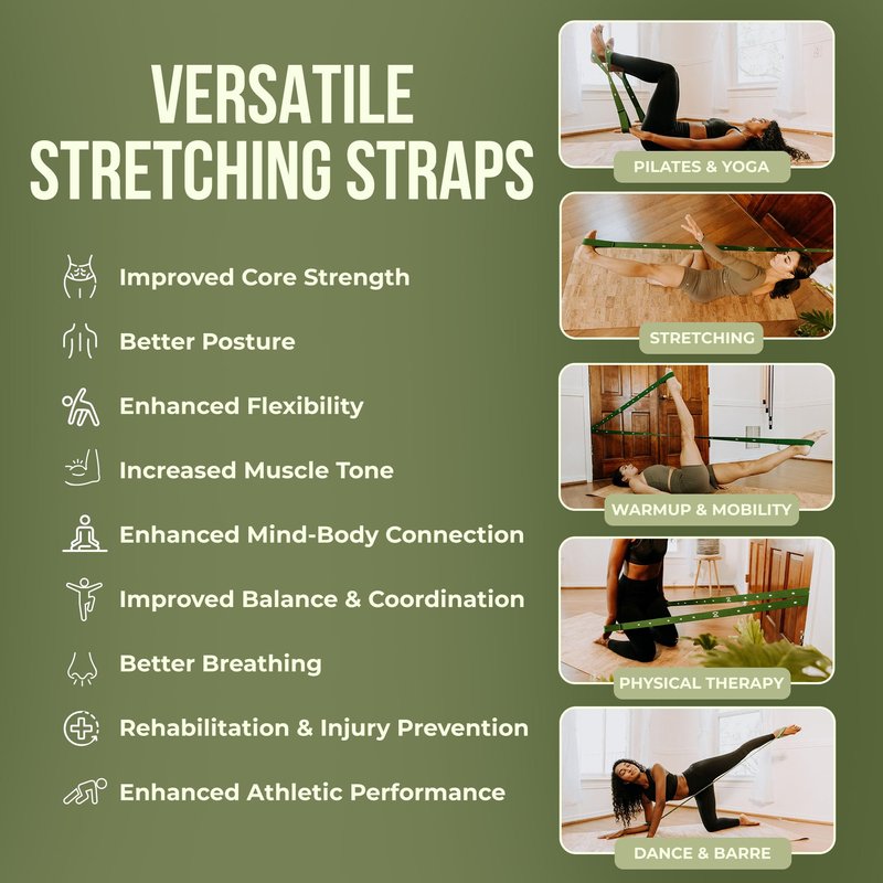 - COMPLETE PILATES SYSTEM FOR ALL FITNESS LEVELS – This versatile Pilates kit includes stretch straps with loops and a durable door anchor, making it perfect for Pilates, yoga, and stretching routines. It offers an all-in-one solution for reformer-style workouts at home, outdoors, or on the go. Designed to improve flexibility and strengthen muscles, it’s ideal for anyone looking to get a full-body workout anytime, anywhere, using stretch straps for physical therapy and more.