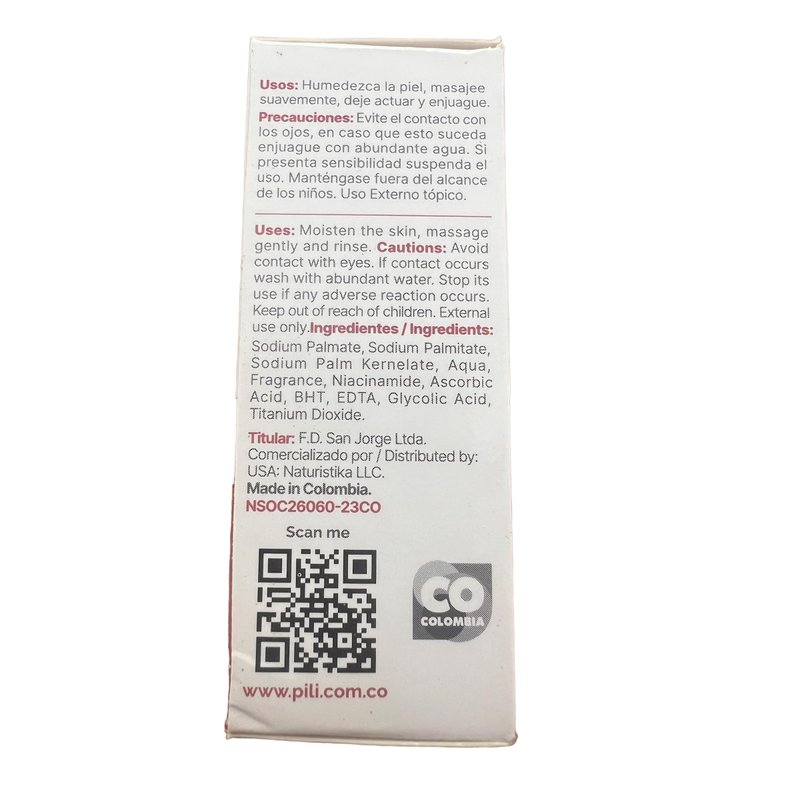Manufactured by: Laboratorio San Jorge SAS BIC. Made in Colombia. Distributed in USA by Naturistika LLC. https://pilinatural.com/