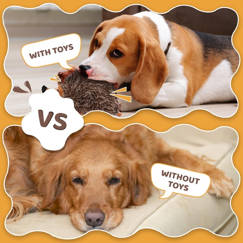 - đăHedgehog Dog Toy With SqueakerăScreams and fluff are full, and when bitten, it will make a clear sound. It can be used for bonding with your puppy, reducing stress or separation anxiety, or simply giving them an active outlet for channeling aggression or intense play.Provide your four-legged best friend with an interactive chew toy that makes noise, keeps them engaged, and is gentler on teeth, gums, and dental health.