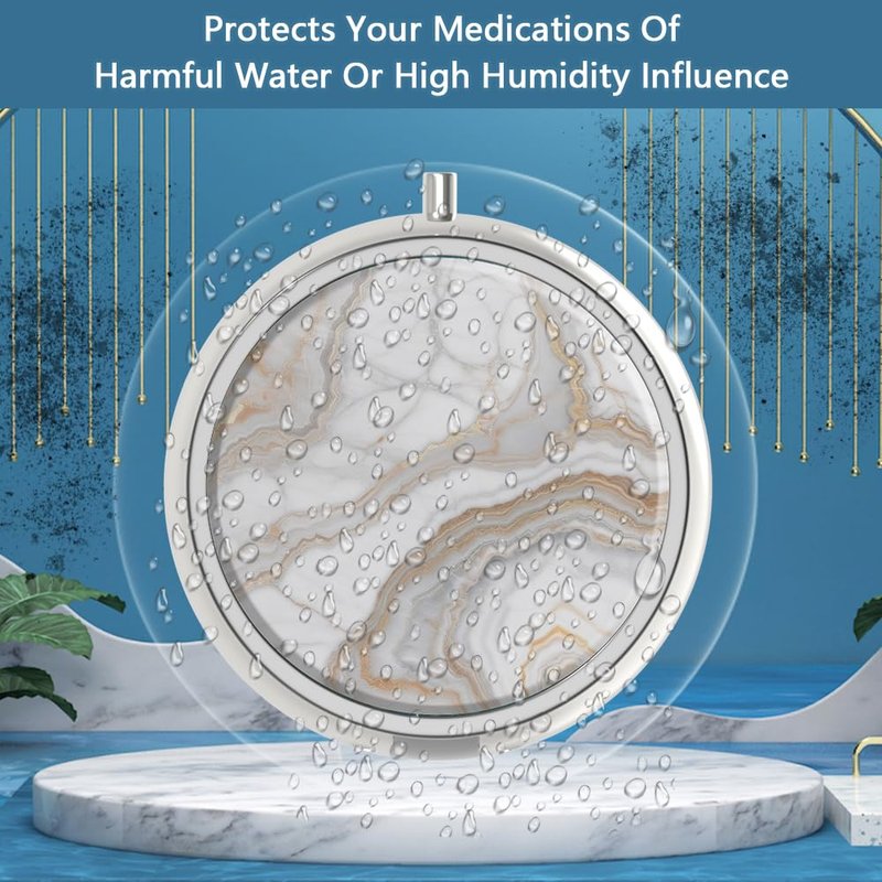 Pill Box 3 Compartment Medicine Pill Case,Portable Pill Box for Pocket or Purse Pill Box Decorative Metal Medicine Vitamin Organizer Unique Gift(Gray Marbling Gold)