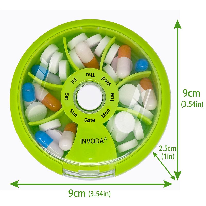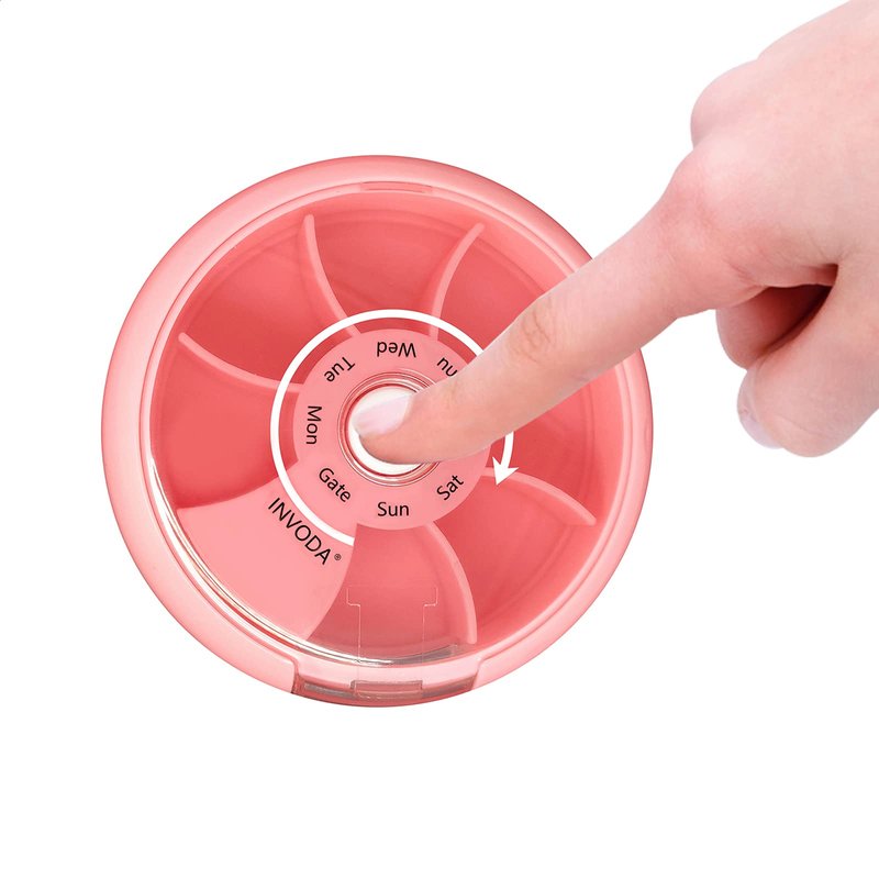 - 💊NEW IDEAS: The rotary design of the round button is our unique attempt and innovation. It has a different compartment, which is designed to prevent accidental leakage of pills. After taking the medicine, rotate the high compartment to the side opening, which can completely ensure the safety of the pill.