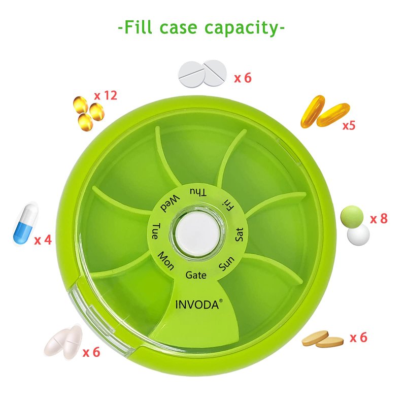 Small volume large capacity , convenient design with compartment helps to remember your medicine every day, no need to bring multiple medicine bottles. This is an ideal pill case which just need to fill once a week in advance.