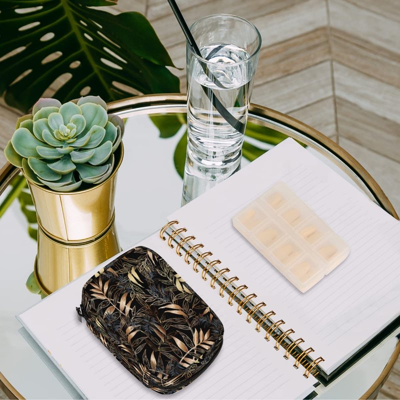 - EASY TO CARRY PILL BAG: Small and compact size elegant leaf travel pill case, put it directly into the backpack without taking up space. Besides, With Velcro backside pill case, can be attached to a book bag, purse, etc. Easy to carry, perfect for daily life, travel, business, camping. For on-the-go people, simply pack the vitamins, pill or prescriptions you need into this case.