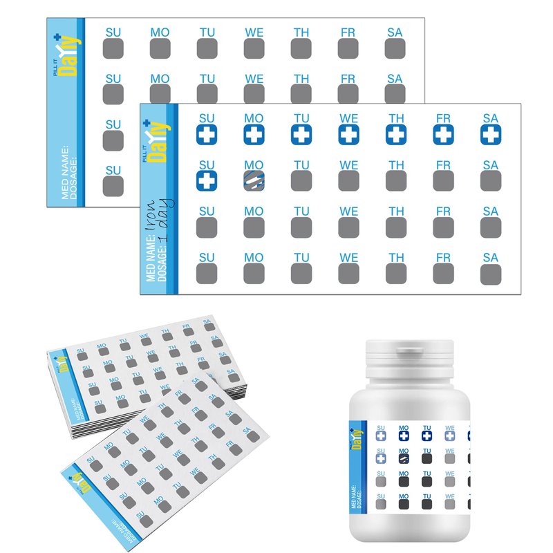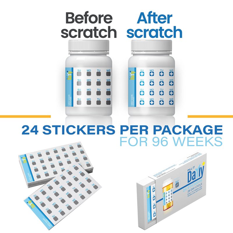 PILL IT DaYly Scratch Off Stickers, Daily Pill Reminder Medication Tracker, Pill Bottles Stickers, Portable Pill Tracker, Pill Organizer Alternative, Multi Dose, Kids, Pet, Travel, Prenatal Vitamins